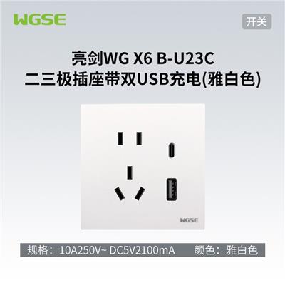 型号:亮剑WG X6 B-U23C 二三极插座带双USB充电(雅白色)